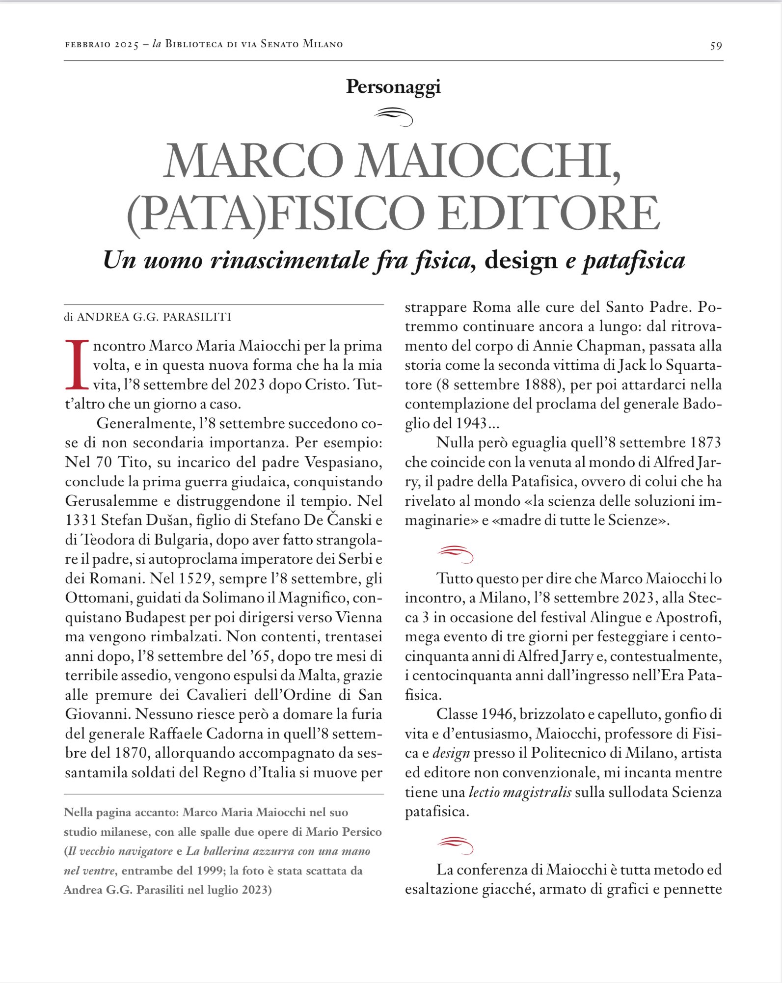 Marco Maiocchi, (pata)fisico editore, in “la Biblioteca di via Senato”, febbraio 2025