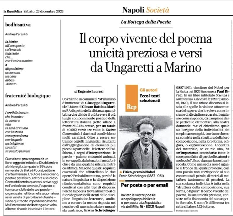 Grazie a Eugenio Lucrezi, che nella sua deliziosa rubrica “la Bottega della Poesia”