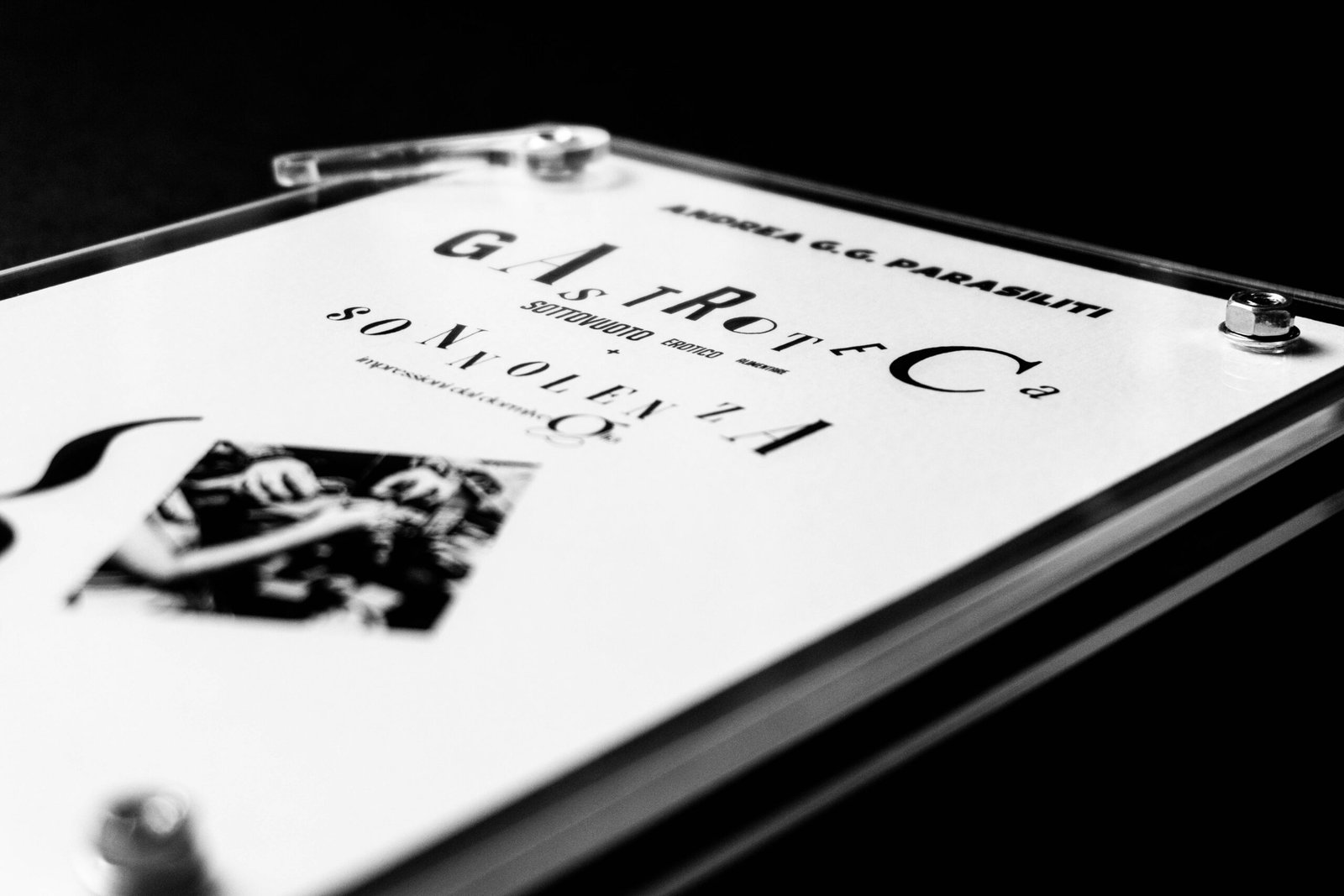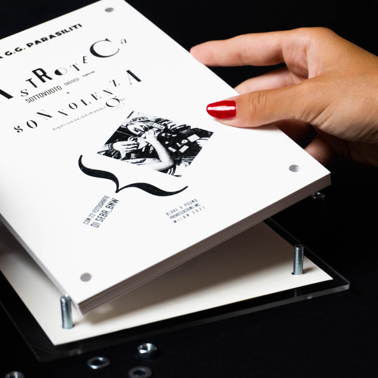 Andrea G.G. Parasiliti, Gastroteca. Sottovuoto erotico alimentare + Sonnolenza. Impressioni dal dormiveglia, con 22 fotografie di Seba_bnw, libro d’artista imbullonato in plexiglass con chiave esagonale autografata, Blake & Pound Privatizations Inc., Milan 2021, in 99 esemplari numerati a mano.