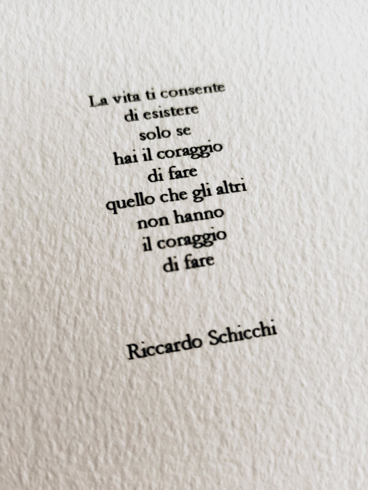 E allora, ecco tutto un palpeggiamento di carte pregiate, finché le mie mani si incantano sulla “Hahnemühle William Turner” da 310 grammi, sulla quale scegliamo di imprimere i miei nuovi testi e delle poesie che sono, tutte, una speranza di leggerezza.