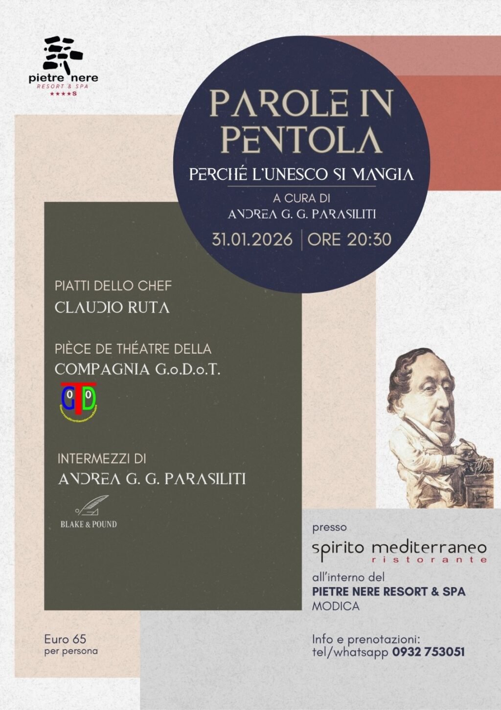 Parole in pentola: presentazione teatral culinaria, Pietre Nere Resort (Modica), 25 gennaio 2025